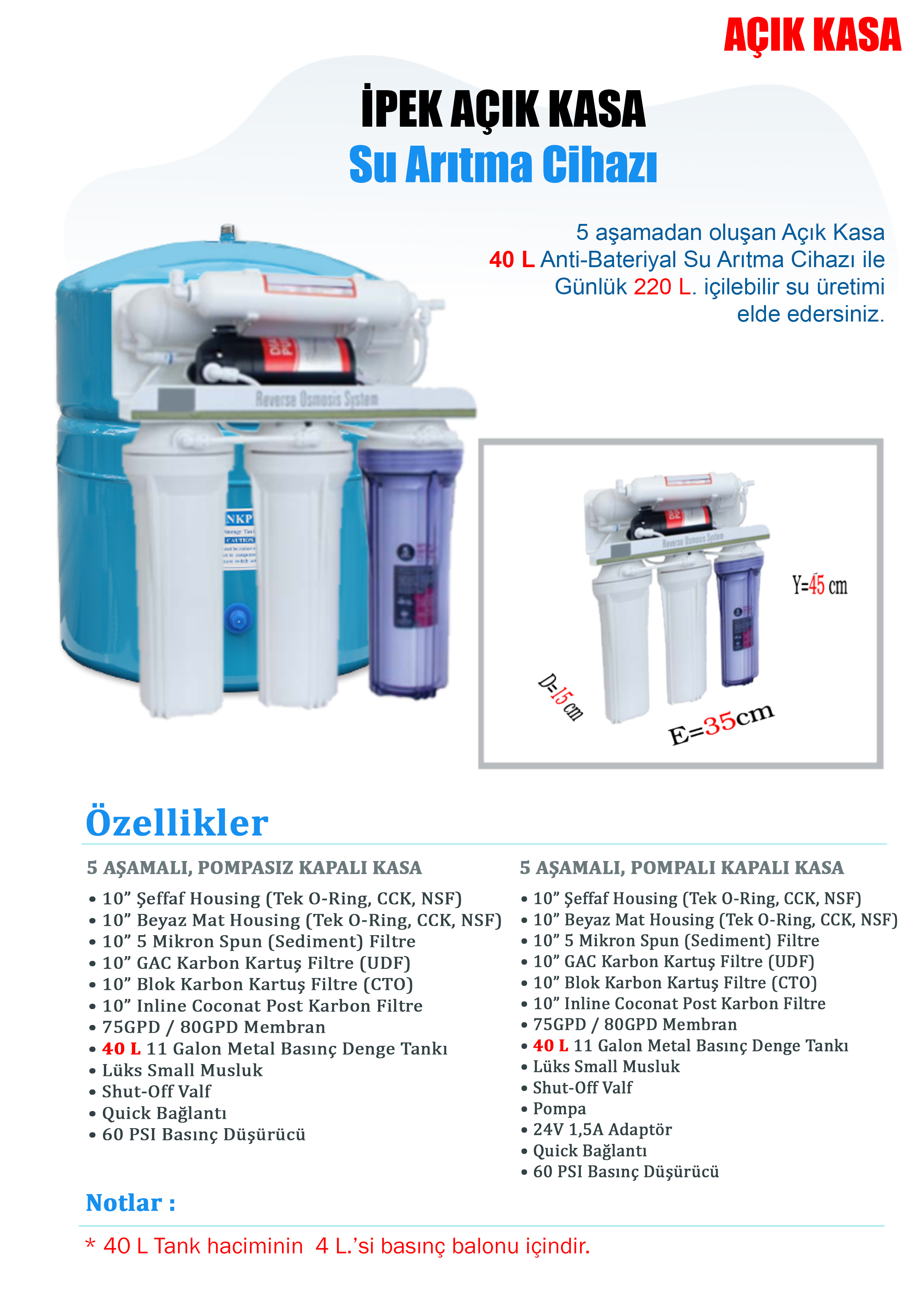 İPEK AÇIK KASA 40L SU ARITMA CIHAZI